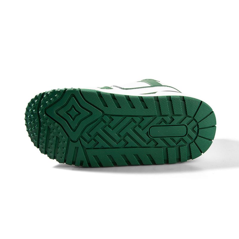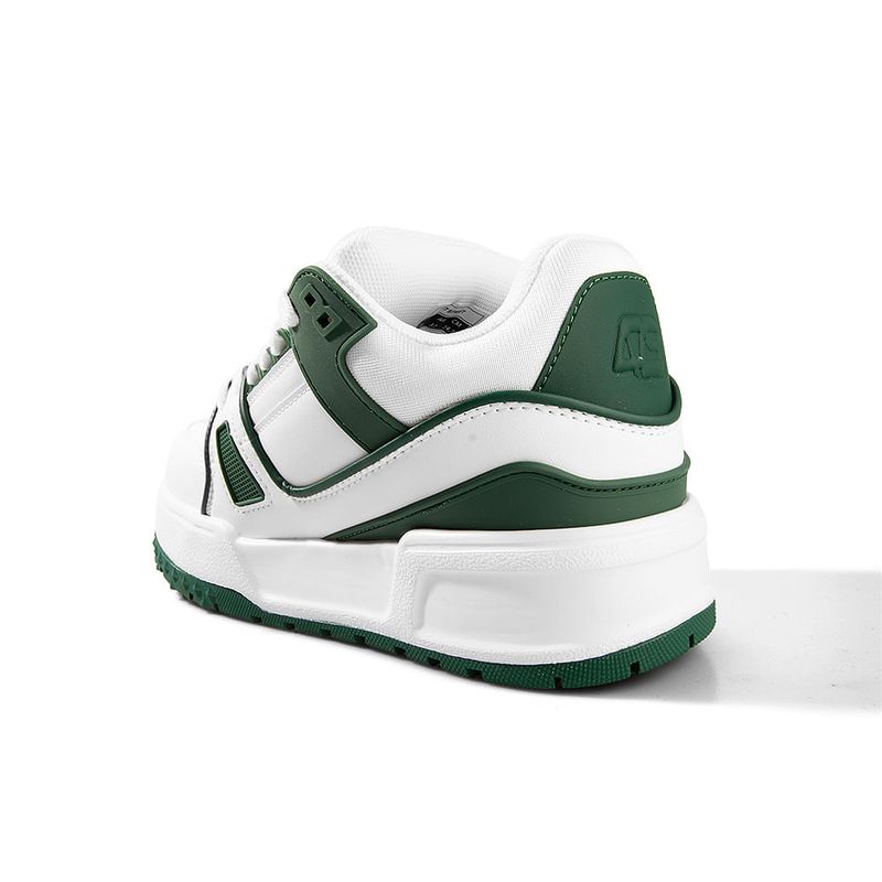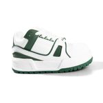 Zapatilla de símil cuero con recortes a contratono con base bicolor y accesorio de la marca en cordonera.